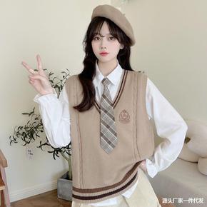 现货 学院英伦风JK制服刺绣V领少女背心学生校服毛...