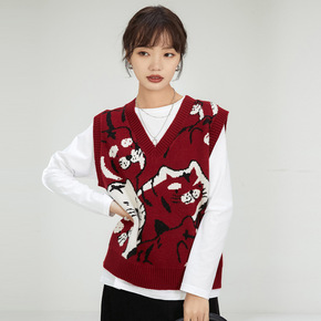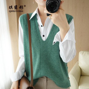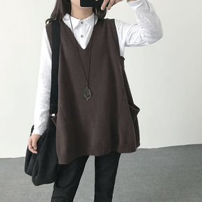 秋冬季新款日系学院风v领针织马甲女士春秋叠穿坎肩毛...