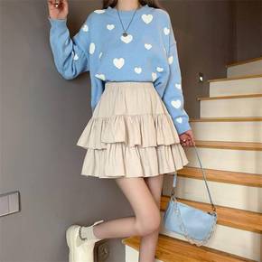 学院风秋冬款网红外穿纯色百搭蓬蓬蛋糕裙高腰显瘦荷叶...