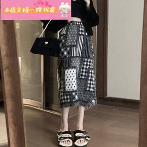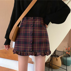 学院风格子半身裙女2022年秋冬复古高腰包臀裙木耳...