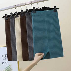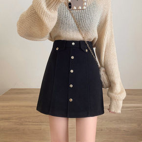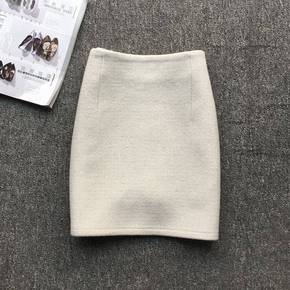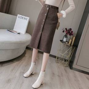 毛呢半身裙女秋冬新款韩版高腰字裙显瘦开叉包臀裙中长...
