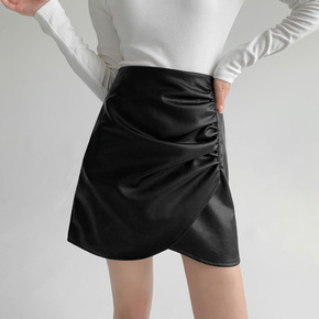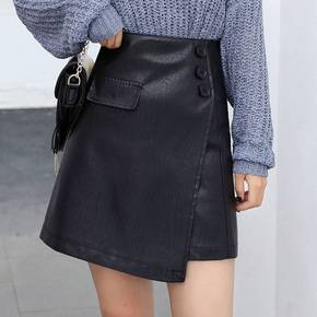 皮裙2022新款包臀短裙女秋冬气质a字半身裙显瘦高...