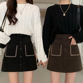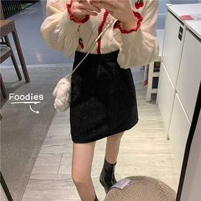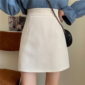 高腰雪尼尔字半身裙秋冬女新款大码显瘦短裙加厚包臀裙...