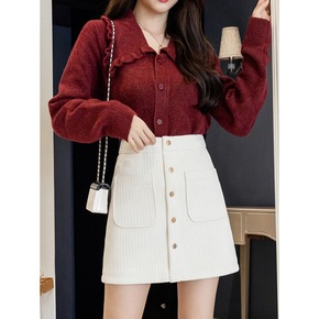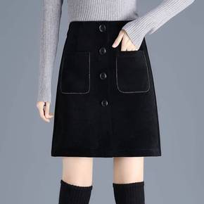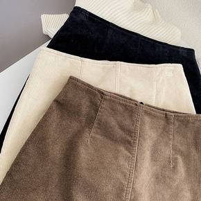 2022秋冬新款韩版高腰显瘦灯芯绒A字半身裙包臀短...