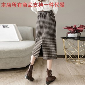 批发大码小香风毛呢格子半身裙女秋冬韩版百搭包臀裙高...