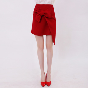 2022春夏新款欧美红色绑结蝴蝶结半身裙高腰显瘦A...