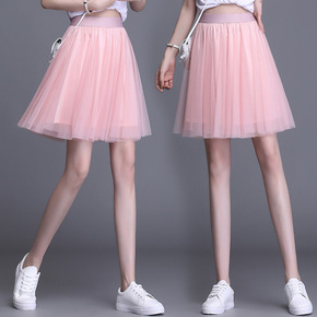 2021新款小个子女装夏季薄款仙女蓬蓬网纱百褶裙显...