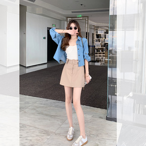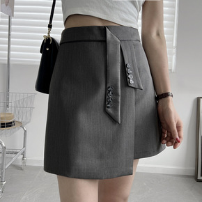 2022新款不规则小众半身裙夏季 ins纽扣装饰短...