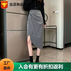 西装裙防走光半身裙春秋高腰拉链女黑裙开叉职业上班气...