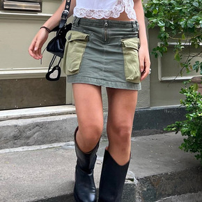 欧美街头风高腰提臀半身裙速卖通新款性感辣妹风重工腰...