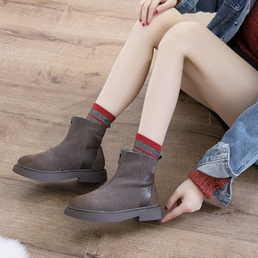 小短靴女2021年春秋季新款秋冬平底女鞋女靴子秋款...