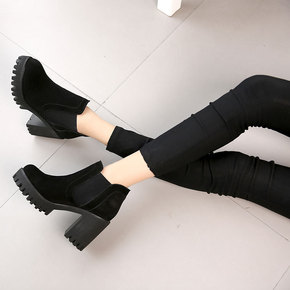 亚马逊外贸大码女靴子43码2019秋冬新款厚底短靴...