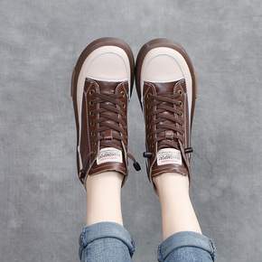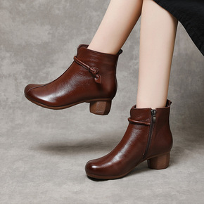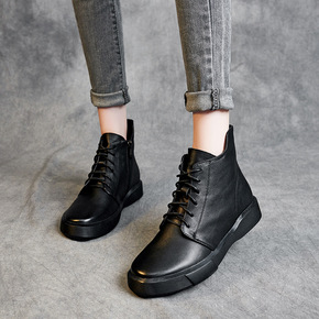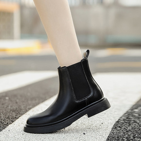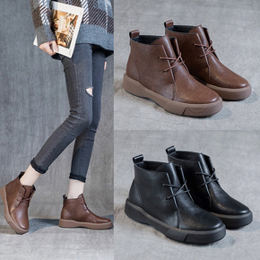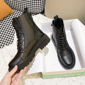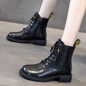 秋冬季靴子女2021新款机车靴牛皮英伦风短靴中跟真...