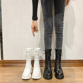 2021厚底增高白色马丁靴女夏季薄款透气英伦风潮i...