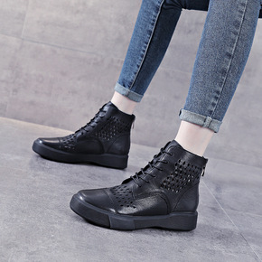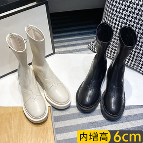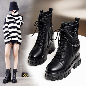 6孔真皮内增高马丁靴女2022秋冬新款短靴女粗跟加...