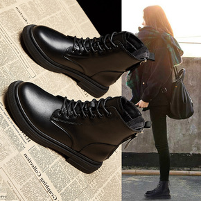 真皮马丁靴女 2021秋冬新款短靴女 英伦风内增高...