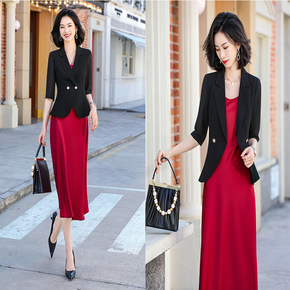 时尚小西装连衣裙套装2022春夏新款显瘦收腰休闲气...