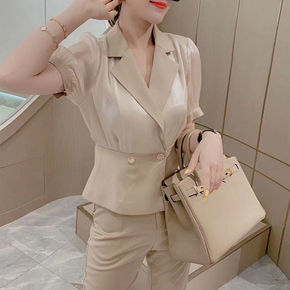 职业小西装套装女夏2021新款女神范洋气减龄薄款开...