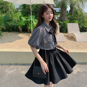 网红女神范可盐可甜套装女夏款短袖上衣显瘦半身裙子学...