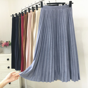 秋冬新款鹿皮绒半身裙女纯色松紧腰中长款百搭学院风复...