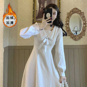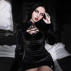 22168P复古旗袍小众长袖泡泡袖连衣裙秋冬新款2...