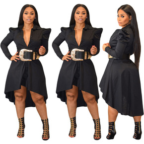 欧美ins2021秋冬新款连衣裙时尚性感辣妹单排扣...