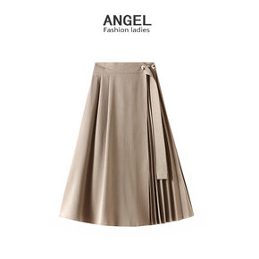 25色!2021秋冬新款腰带厚雪纺大摆a字百褶裙中...