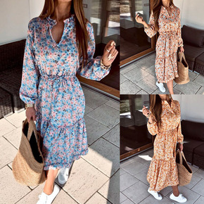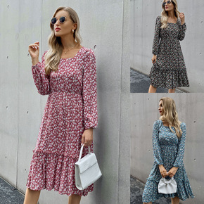 跨境女装速卖通网红款2021年秋冬新品复古方领连衣...