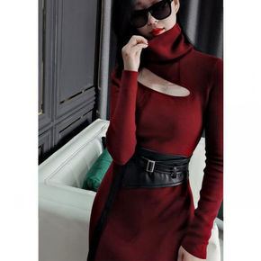 韩版2021年秋冬季新款镂空修身显瘦连衣裙女长袖百...