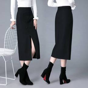 2021秋冬新款百搭纯色时尚鹿皮绒半身裙半松紧腰A...