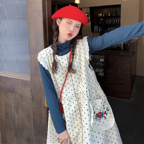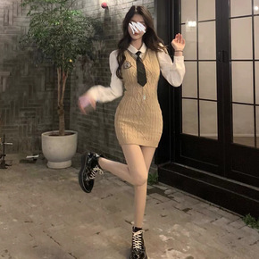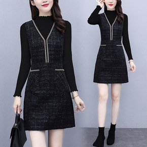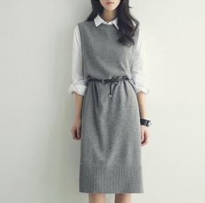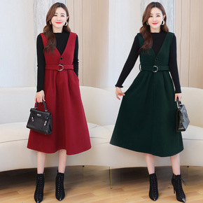 背心裙女秋冬外穿打底内搭裙子两件套中长款毛呢连衣裙...