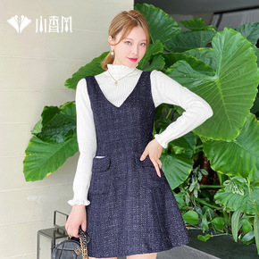 小香风毛呢背带裙法式修身打底连衣裙女冬季气质亮丝背...