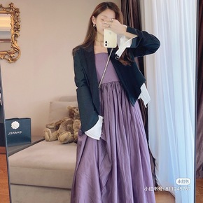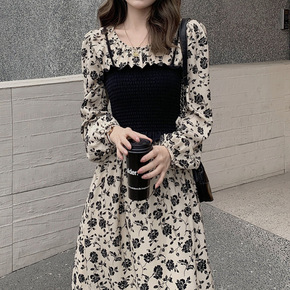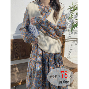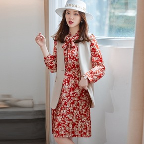 马甲裙子两件套2022年春季冬气质碎花雪纺打底连衣...