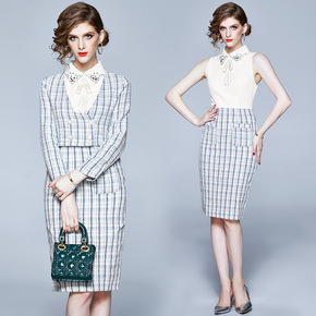 2021年冬季新款英伦风毛呢短外套收腰背心裙两件套...