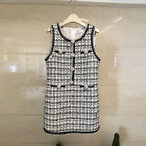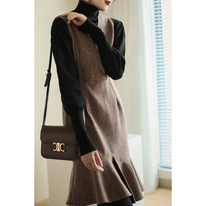 2022秋冬新款千鸟格背心裙法式气质收腰显瘦双面呢...