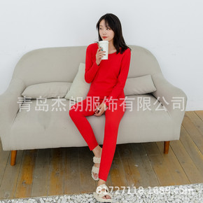 秋冬美体蕾丝打底保暖内衣 女修身显瘦圆领秋衣秋裤套...