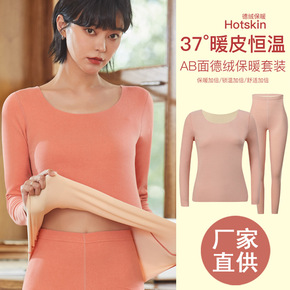 2022秋冬新款德绒保暖内衣套装女士双面磨毛秋衣秋...