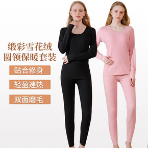 2022新款女士缎彩雪花绒保暖内衣圆领压领套装薄 ...
