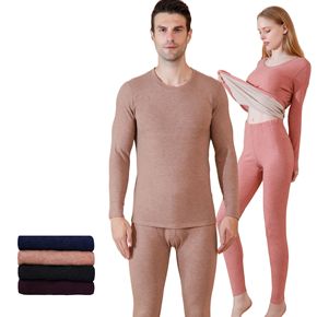 膨体桑蚕丝保暖内衣套装男士打底秋衣秋裤双面绒女士内...