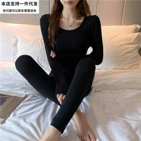女士保暖内衣秋冬2021新款纯色弹力保暖秋衣秋裤紧...