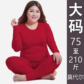 莫代尔保暖内衣女薄款修身秋衣秋裤纯棉套装大码无痕女...