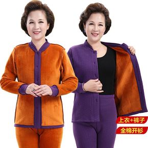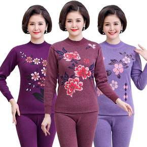 2021秋装新款胖妈妈保暖内衣女薄款套装中老年奶奶...