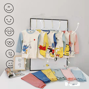 YM2181清儿童卡通精梳棉家居服套装秋衣秋裤束裤...