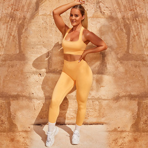 2022新款欧美瑜伽服套装纯色美背运动文胸内衣女....