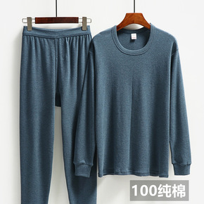 中老年纯棉保暖内衣男开衫秋衣秋裤套装老年人棉毛衫裤...