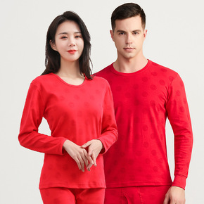 中老年人本命年男士纯棉情侣保暖内衣套装大红棉毛衫大...