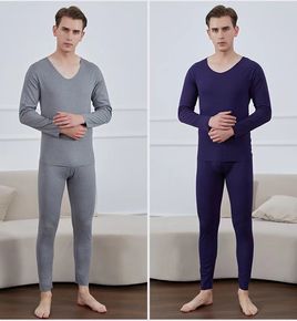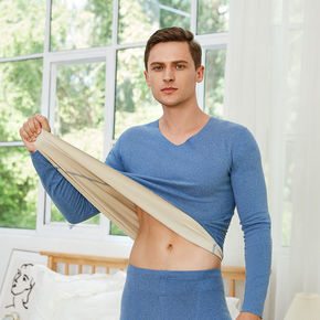 男士保暖无痕内衣套装加绒秋冬磨毛V领仿阳离子德绒秋...