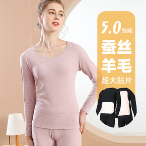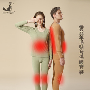 冬季加厚羊羔绒保暖内衣套装2022新款蚕丝护膝秋衣...