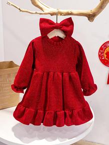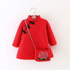 女童新年装加绒连衣裙2021新款儿童冬装公主裙女宝...