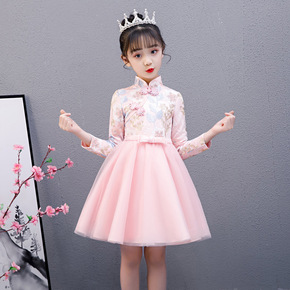 女童旗袍连衣裙中国风儿童中式礼服唐装小女孩走秀演出...